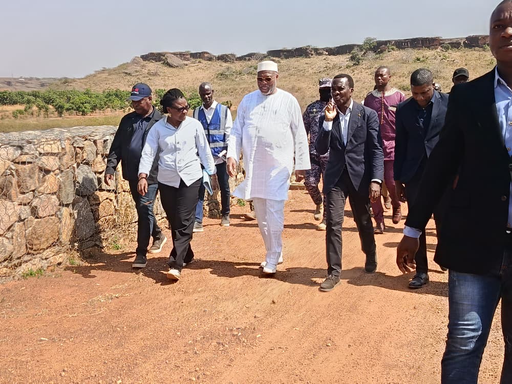 Le périple ministériel a conduit la délégation sur plusieurs sites clés : la prise en rivière, la station de production d’eau et les PEA (points d’eau autonomes) à Mango, en attente de raccordement au réseau ; le château d’eau en construction à Timbou ; la station de traitement d’eau à Dalwak, ainsi que le camp militaire de Nioukpourma.